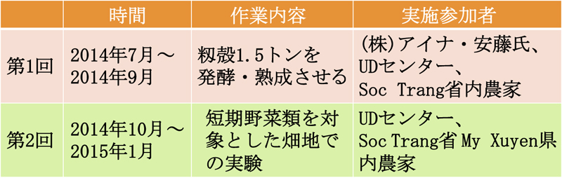 Soc Trang省内における発酵もみ殻の生産及び実験